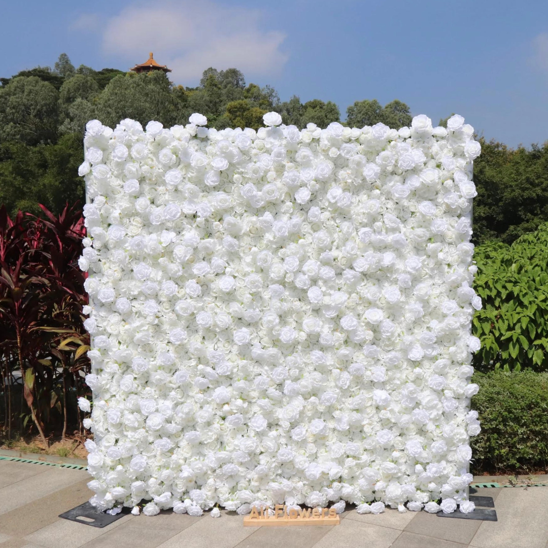 This photobooth backdrop is an 8×8ft white rose fabric artificial flower wall, great for weddings, baby showers and more. Rental Cost - $200